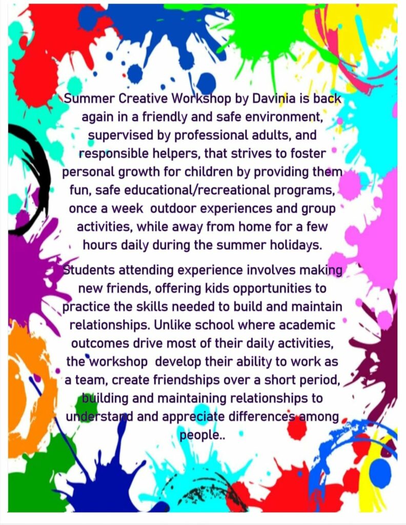 The Summer Creative Workshop by Davinia returns with exciting new activities and crafts! A fun, inspiring experience in fully air-conditioned, risk-assessment-certified premises.